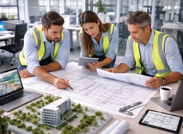Gerenciamento e fiscalização de obras de engenharia, garantindo o cumprimento do projeto, controle de prazos, custos, qualidade e conformidade com as normas técnicas.