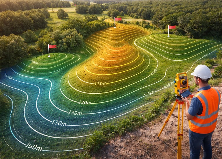 Determinação precisa das cotas e desníveis do terreno para apoio a projetos e obras.